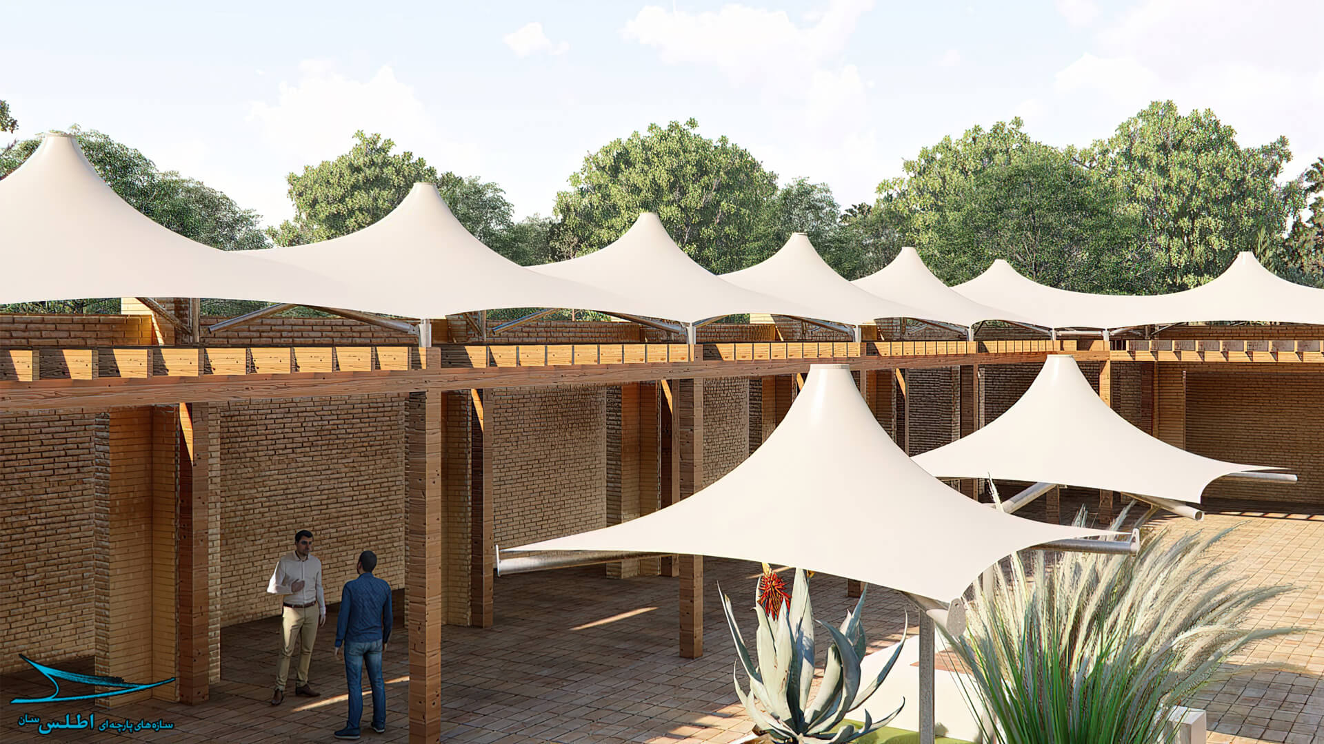 سازه پارچه ای رواق (راهروها) و محوطه مهمانسرای گل گهر سیرجان